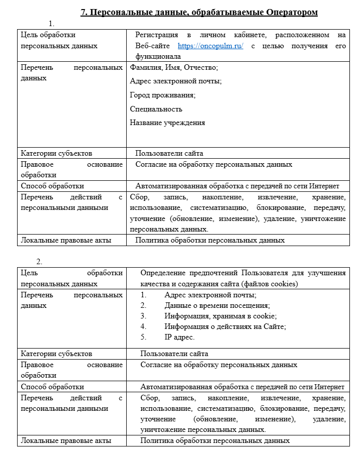 1.3 Целями Политики для сайта https://oncopulm.ru/ являются: